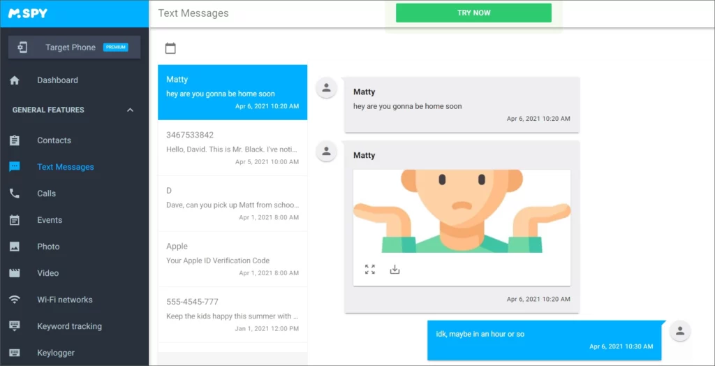 - Call and Text Monitoring: Tracking coming and outgoing calls, text messages, as well as Instagram, Facebook, Snapchat, and other social media messages from popular platforms.